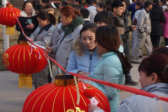 為弘揚民族文化,讓職工們體驗元宵節(jié)猜燈謎的傳統(tǒng)習(xí)俗,豐富企業(yè)文化生活,營造喜慶、祥和的節(jié)日氛圍,公司于2015年3月3日(正月十四)下午舉辦了河南萬杰第四屆“慶元宵、猜燈謎”活動。本次活動由公司行政部、總經(jīng)辦聯(lián)合舉辦,并得到了各部門職工的大力支持。 本次“猜燈謎”活動,謎面科學(xué)而通俗,其中涵蓋著字謎、成語、腦筋急轉(zhuǎn)彎及公司戰(zhàn)略規(guī)劃問答等內(nèi)容,生動而活潑,面廣而量大。 下午16:30,萬杰全體家人準(zhǔn)時來到操場,在行政部經(jīng)理劉志軍對本次“慶元宵 猜燈謎”的活動規(guī)則進行說明后,河南萬杰第四屆“慶元宵 猜燈謎”活動正式開始。 zui為吸引職工眼球的是公司操場內(nèi)一排排的紅燈籠及燈籠上貼著燈謎的各色紙條。微風(fēng)吹來,謎面隨風(fēng)起舞,職工們穿梭其間,流連忘返。謎面前,一雙雙欣喜而激動的眼睛閃爍著智慧的光芒。大家積極參與,三三兩兩聚在謎題下細心斟酌、認真思索,現(xiàn)場不時傳出猜中謎底后欣喜的歡呼聲,場面熱鬧非凡,處處洋溢著濃濃的文化氣息。有的同事在燈謎前冥思苦想,也有同事想到答案豁然開朗的,還有些同事因久久想不到答案而聚集在一起共同探討……,盡管今年燈謎的難度較往年大得多,但仍擋不住大家積極開動腦筋的激情與智慧,zui終通過大家的努力絕大部分燈謎都被猜中。職工們猜到燈謎時的興奮與領(lǐng)獎時的喜悅,把活動的氣氛推向高潮。 zui后,計分員根據(jù)猜中謎底的數(shù)量統(tǒng)計出前十名人員,公司領(lǐng)導(dǎo)分別為每位獲獎人員贈送了一對大紅燈籠,給首個猜出答案的人和猜出總數(shù)zui高的家人獎勵萬杰紀念茶杯一個,活動在歡聲笑語中結(jié)束! 在職工的內(nèi)心深處,公司每年舉行“鬧元宵,猜燈謎”活動儼然成為了萬杰的習(xí)俗之一。每當(dāng)元宵前夕,大家都期盼著這項熱熱鬧鬧的活動,因為她帶給我們的不僅僅是獎品,還有歡聲笑語。小小的燈謎讓大家之間的距離變得更近了,小小的燈謎讓萬杰“以人為本,人以孝為根”的企業(yè)文化深入人心。 “慶元宵